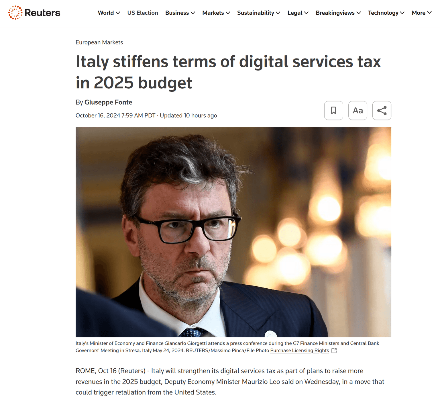 According to Reuters, Deputy Economy Minister Maurizio Leo states that this is "part of plans to raise more revenues in the 2025 budget."