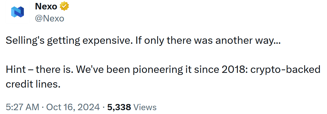 Nexo, a platform offering crypto-backed credit lines, weighed in on the discussion, highlighting their service as an alternative to selling off Bitcoin at a loss or paying exorbitant taxes. Their suggestion, "If only there was another way," refers to utilizing credit lines to access liquidity without triggering taxable events, and while it has gained moderate traction, it hasn't been enough to quell the overall bearish sentiment.