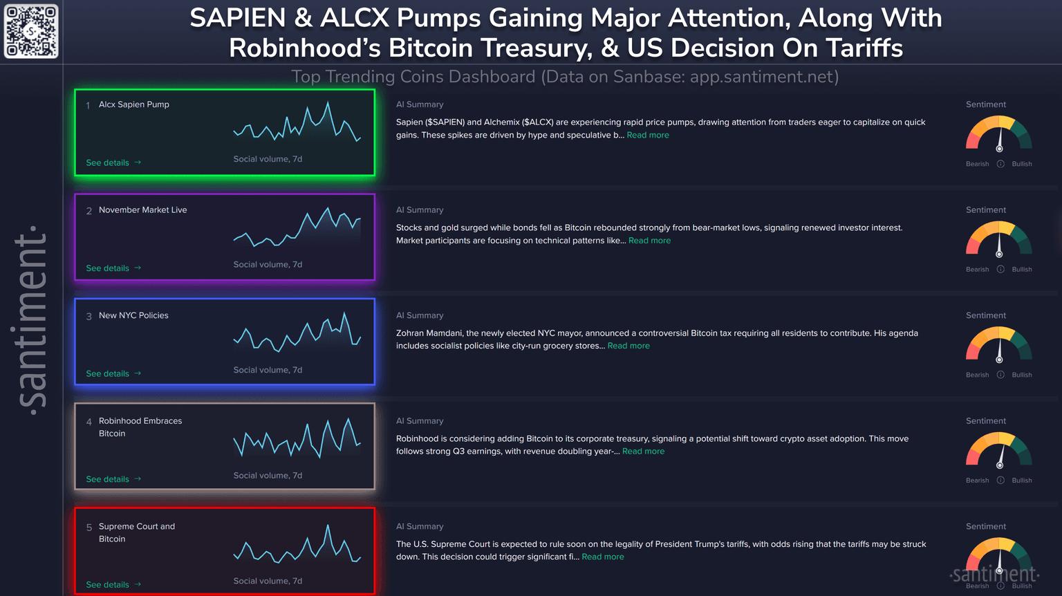 π£ These are the crypto topics gaining the most traction and driving markets as markets try to hang on to support levels: π Alcx Sapien Pump: Sapien ($SAPIEN)