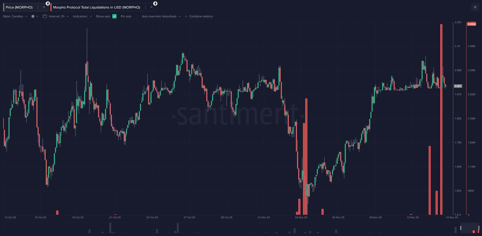 This measures the total USD value of liquidated positions on Morpho. Liquidations happen when borrowers fail to maintain enough collateral to support their loans. Large spikes indicate high stress in the system, often caused by sharp price drops. Periods of few liquidations mean borrowers are managing risk well or markets are stable. Traders often use liquidation data to anticipate forced selling events or future price turbulence.