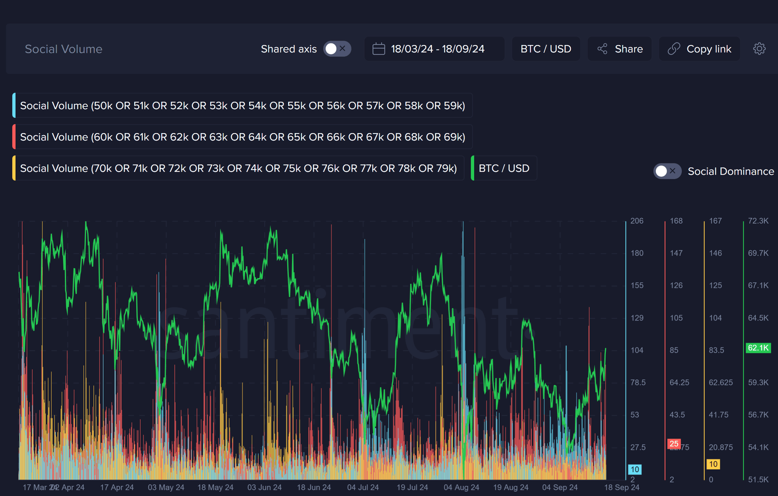 The social expectations from the crowd will have a dramatic impact on where we go from here. With Bitcoin reaching as high as $62.2K today, watch as different price levels are speculated across social media. When we see: