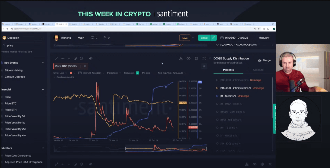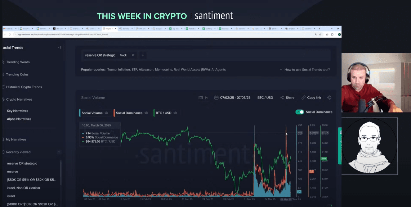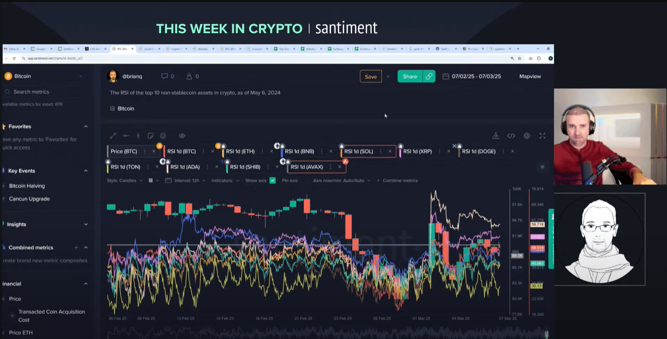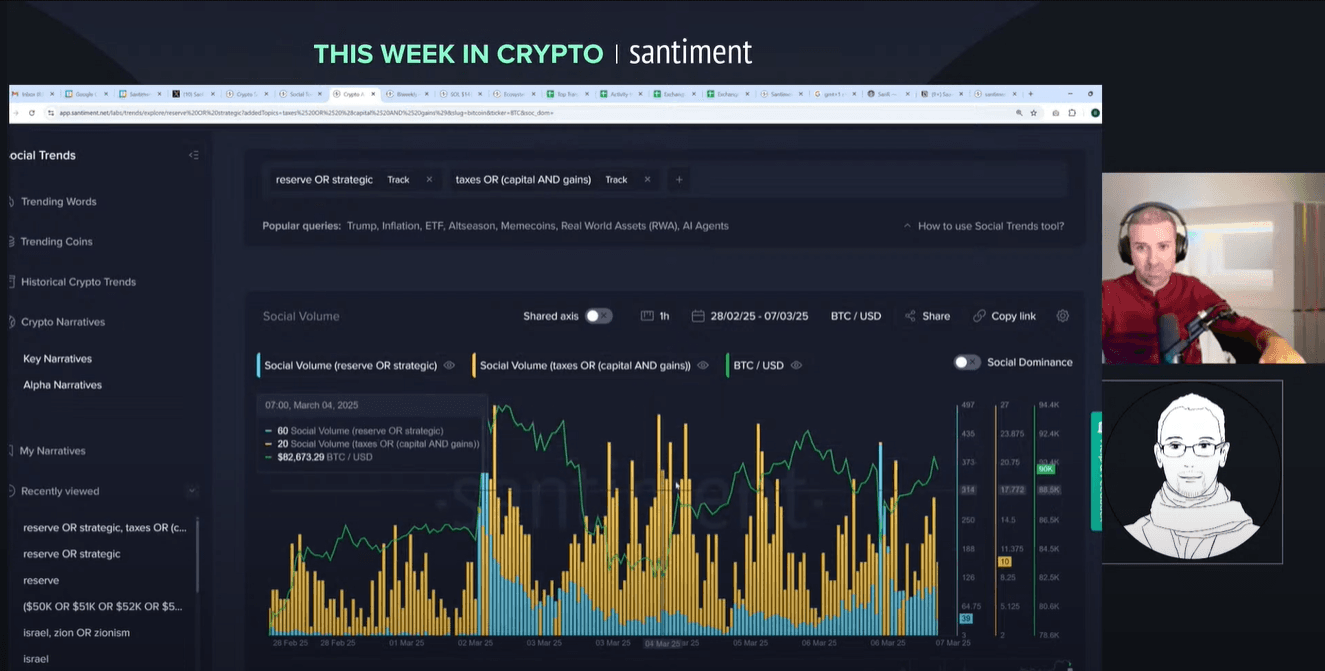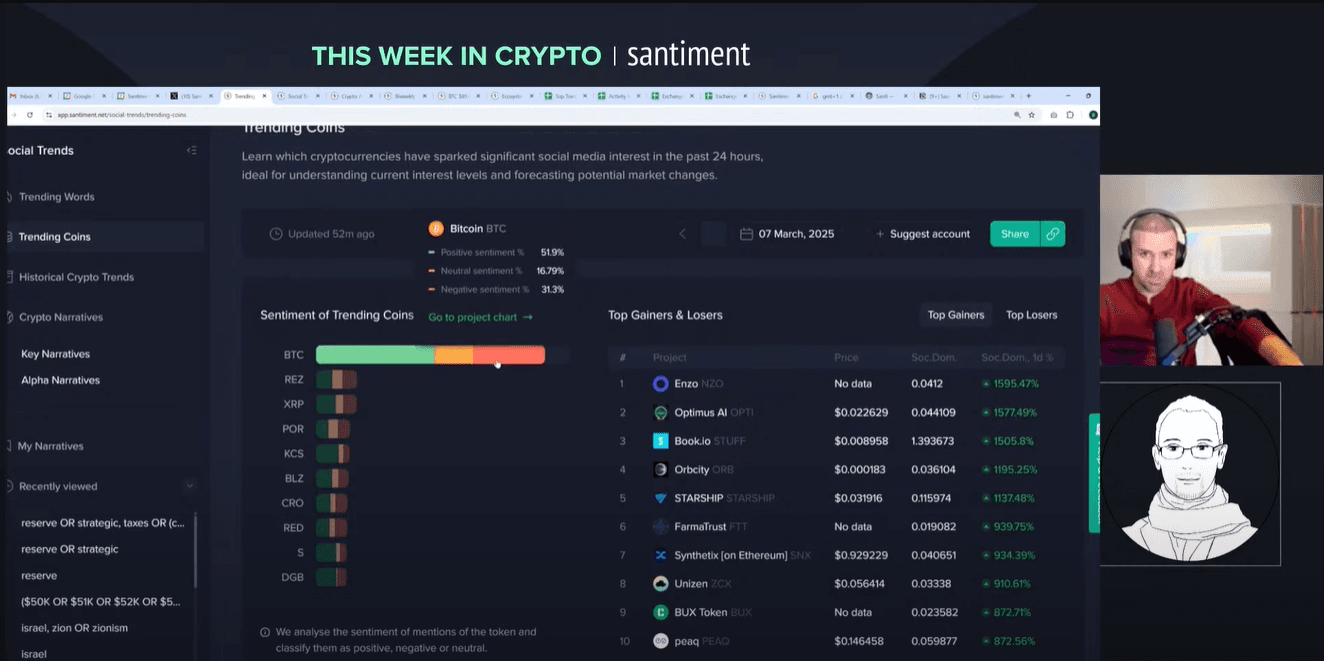 The live stream kicks off with a warm hello, setting the stage for a week of crypto ups and downs. It’s March 7th, 2025, and the market’s been a rollercoaster—mostly climbing, but with some early stumbles that kept traders on edge. Brian promises a data-driven breakdown, teasing big wins and hidden signals that Santiment’s tools are picking up. It’s a perfect entry point for anyone eager to understand this week’s madness.