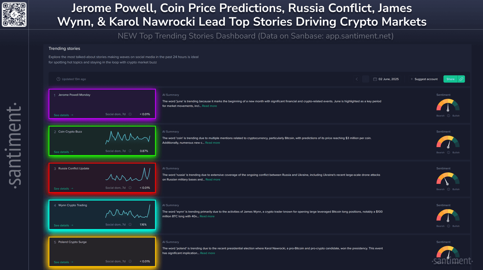 π This Trending Stories dashboard from Santiment is completely free for you to check in on at any time. Bookmark it!