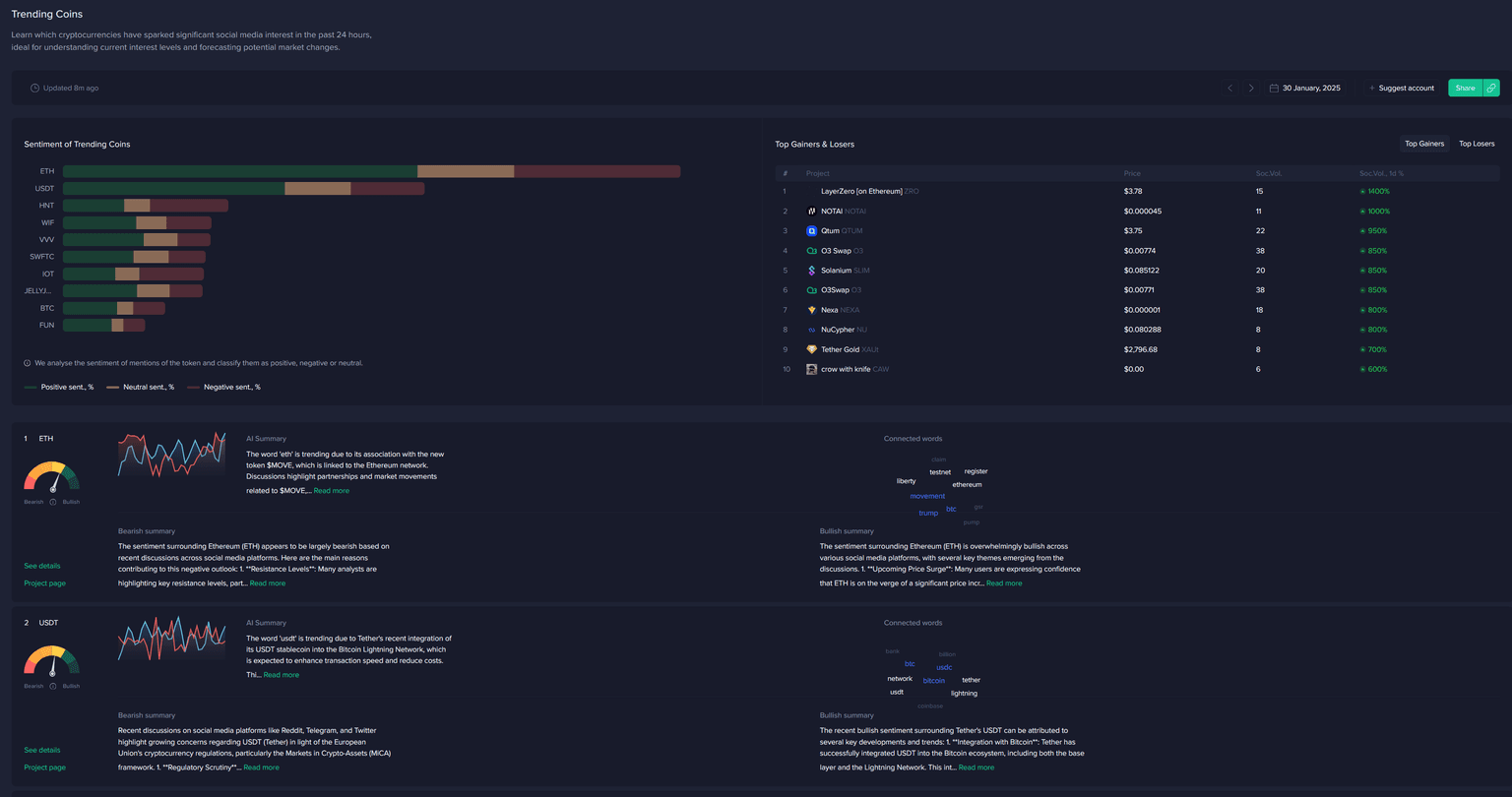 The harsh reality is that data from Santiment’s Trending Tokens research has demonstrated a clear pattern: coins that trend due to social media hype tend to collapse shortly afterward. A backtest simulation showed that buying these tokens as soon as they trend led to negative returns in over 50% of cases. Essentially, by the time you see a coin trending, the best entry points have already passed.