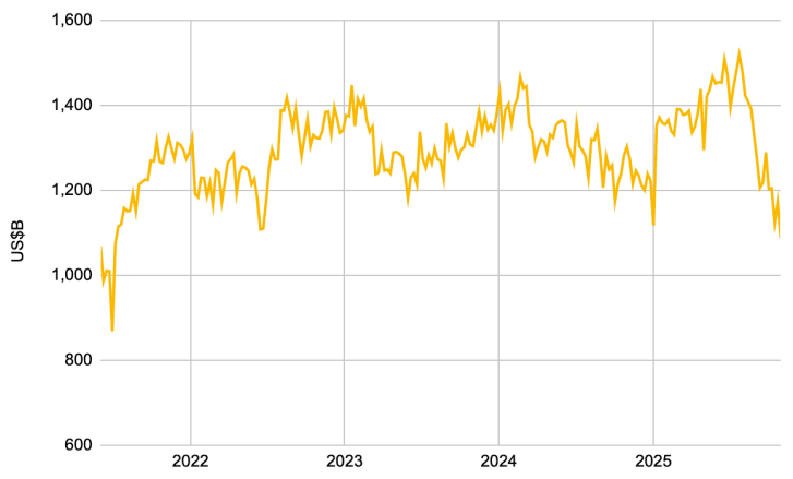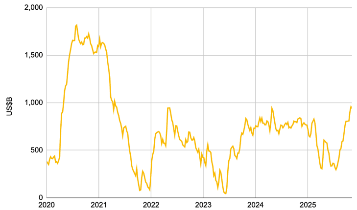 이러한 스트레스의 즉각적인 촉매제는 미국 정부 셧다운이었습니다. 셧다운으로 인해 재무부 일반 계정(TGA) 잔고가 1조 달러를 넘어섰고, 이는 시스템에서 약 7,000억 달러의 유동성을 효과적으로 흡수해버렸습니다. 이는 여러 차례의 금리 인상에 버금가는 긴축 효과입니다.
