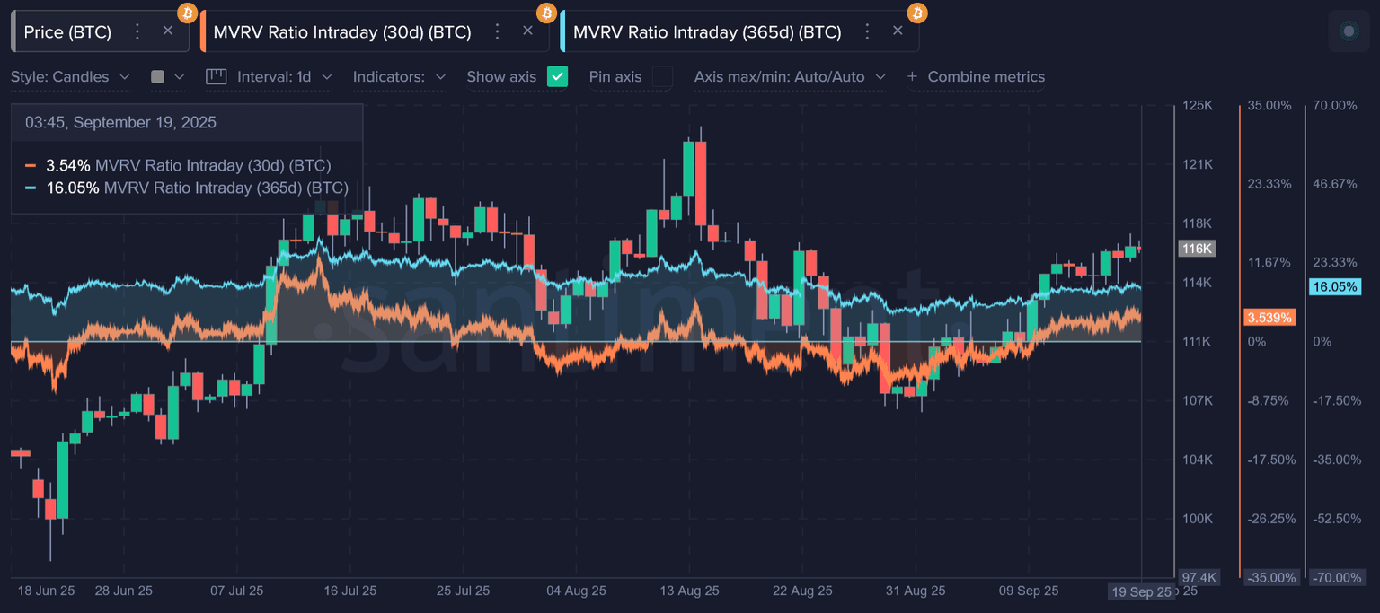 What does this huge social spike mean? Well, traders were particularly keyed in on this one, considering it would (and turned out to) be the first cut in nearly two years. And unlike the dozen or so past FOMC meetings, this one was finally the one that was finally anticipated to result in a change. The question is... did this change actually result in any future price change? Well, we can look at a few MVRV's to see how things are looking for top caps.