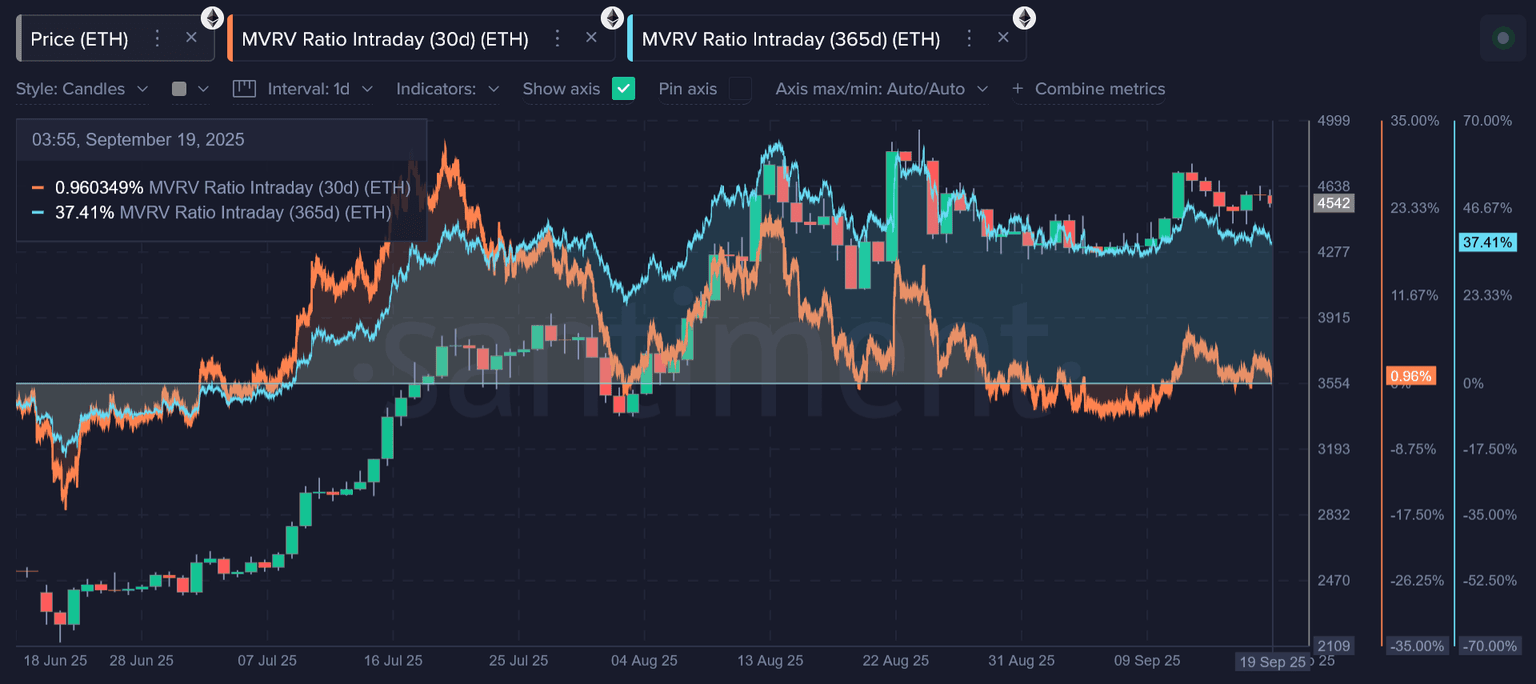 Meanwhile, Ethereum is seeing a slightly better opportunity in jumping in for a short-term rally, with 30-day traders up just +1.0% on their investments, on average. However, due to the #2 market cap's huge mid-year rally, the 1-year MVRV is still way up there at +37.4%. This indicates that Bitcoin is mathematically a much safer bet if you plan on hodling the rest of 2025.