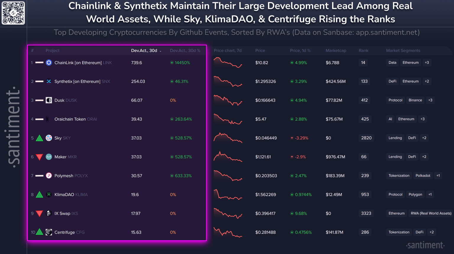 Real World Assets Seeing New Faces Sky, KlimaDAO, and Centrifuge Crack Top 10 Development Activity Leaderboard!