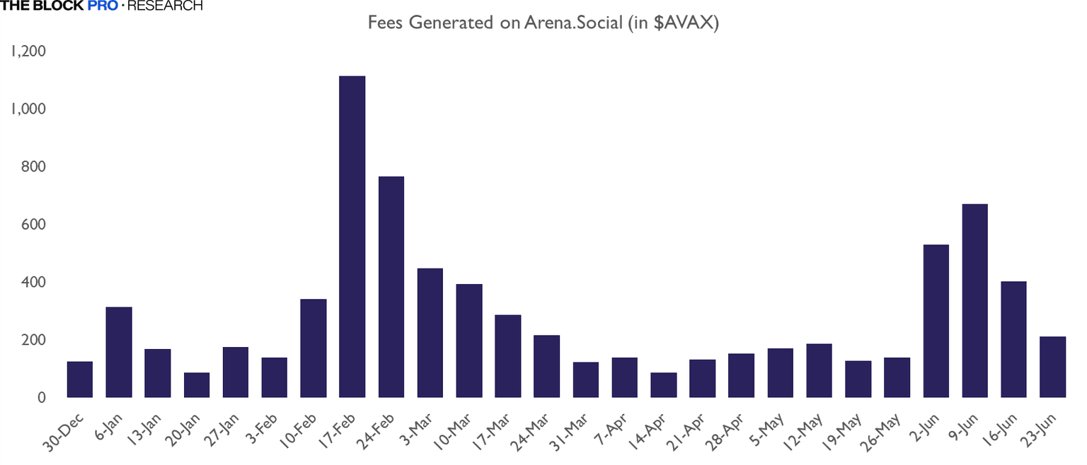 Meanwhile, fee intake on arena.social has been modest in absolute terms, having generated ~7.65K AVAX in the first six months of the year, the equivalent of ~$137K, using the price of AVAX as of 30 June, 2025.