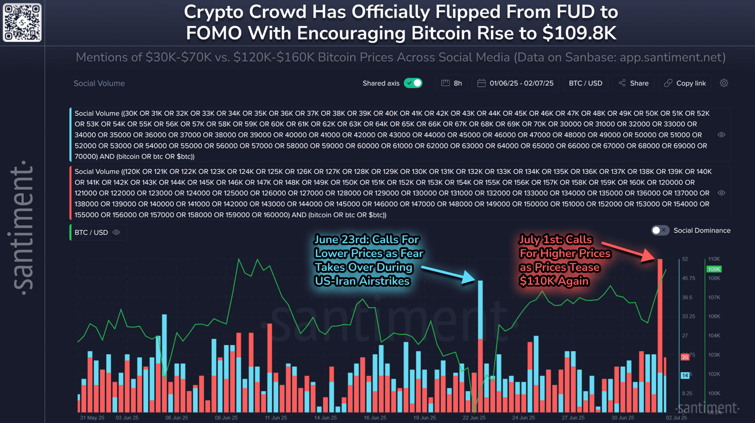 π₯³ Bitcoin has jumped to $109.8K today with FOMO setting in across X, Reddit, Telegram, 4Chan, BitcoinTalk, & Farcaster. Prices move opposite to retail traders'