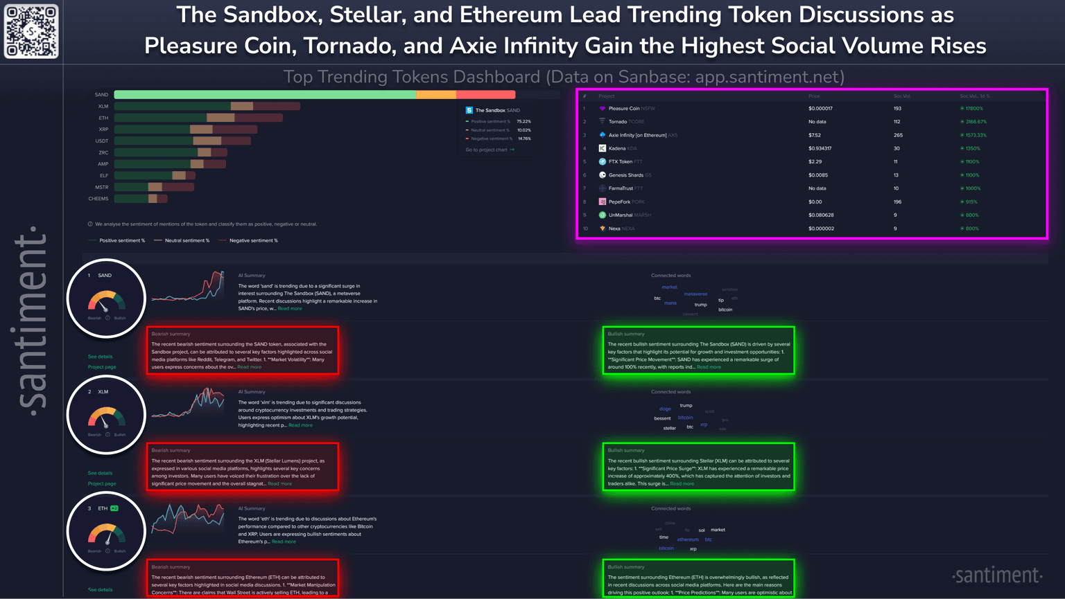 Keep tabs on all of the real-time information updating on the Santiment Top Trending Tokens Dashboard here!