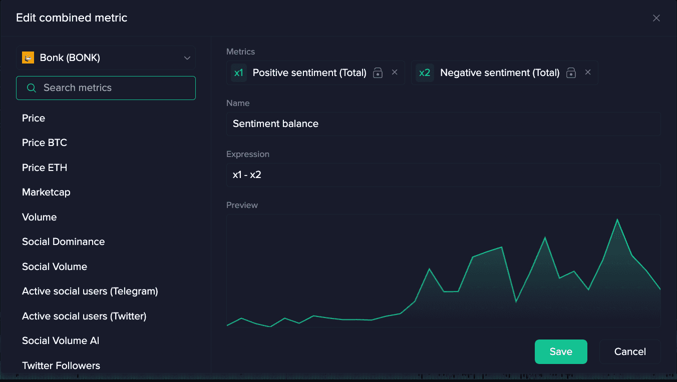 - All standard Santiment social metrics , including social volume, sentiment, and crowd greed & fear indicators, providing a 360Β° view of market participant psychology.