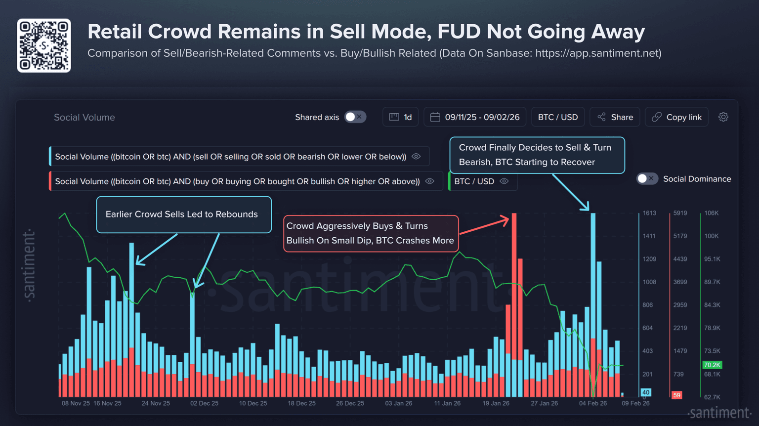 π§ When in doubt, remember to zoom out. Comments related to being bearish or 'selling off' have still dominated the normally bullish or 'buying the dip' narratives that we saw after previous crashes.