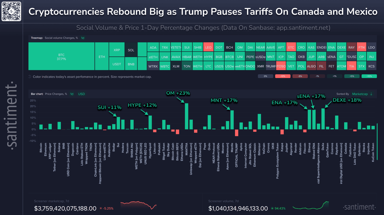 π Following what now looks like a cryptocurrency market overreaction to Trump's tariffs early Monday, the second half of the day quickly reversed course and le