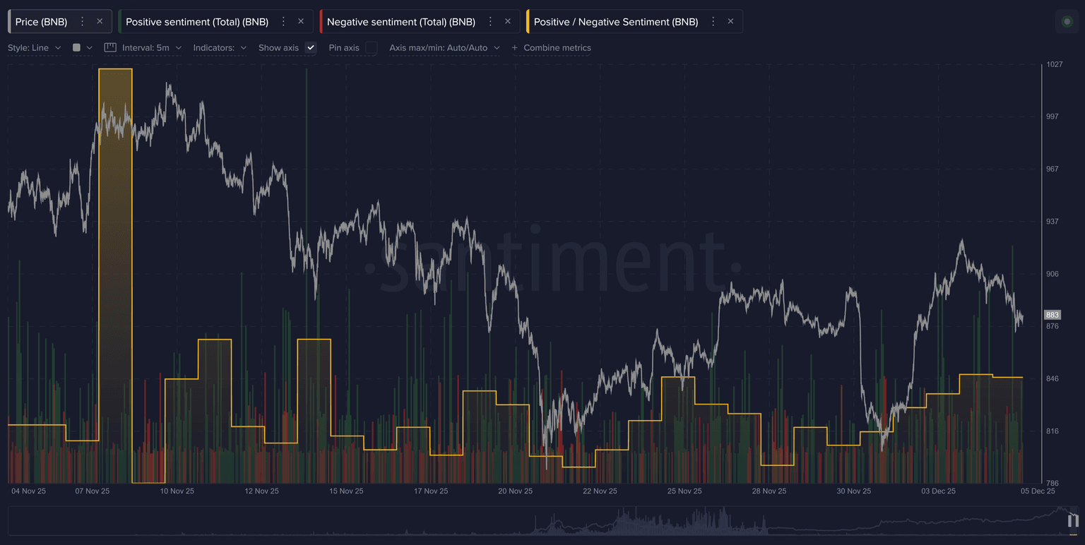 Nevertheless, because BNB is backed by one of the biggest platforms in the world, it continues to hold a high market rank even during quieter periods. As long as Binance remains active, BNB is likely to stay a major player in the crypto space. Everything appears very quiet in terms of sentiment toward the coin for now.