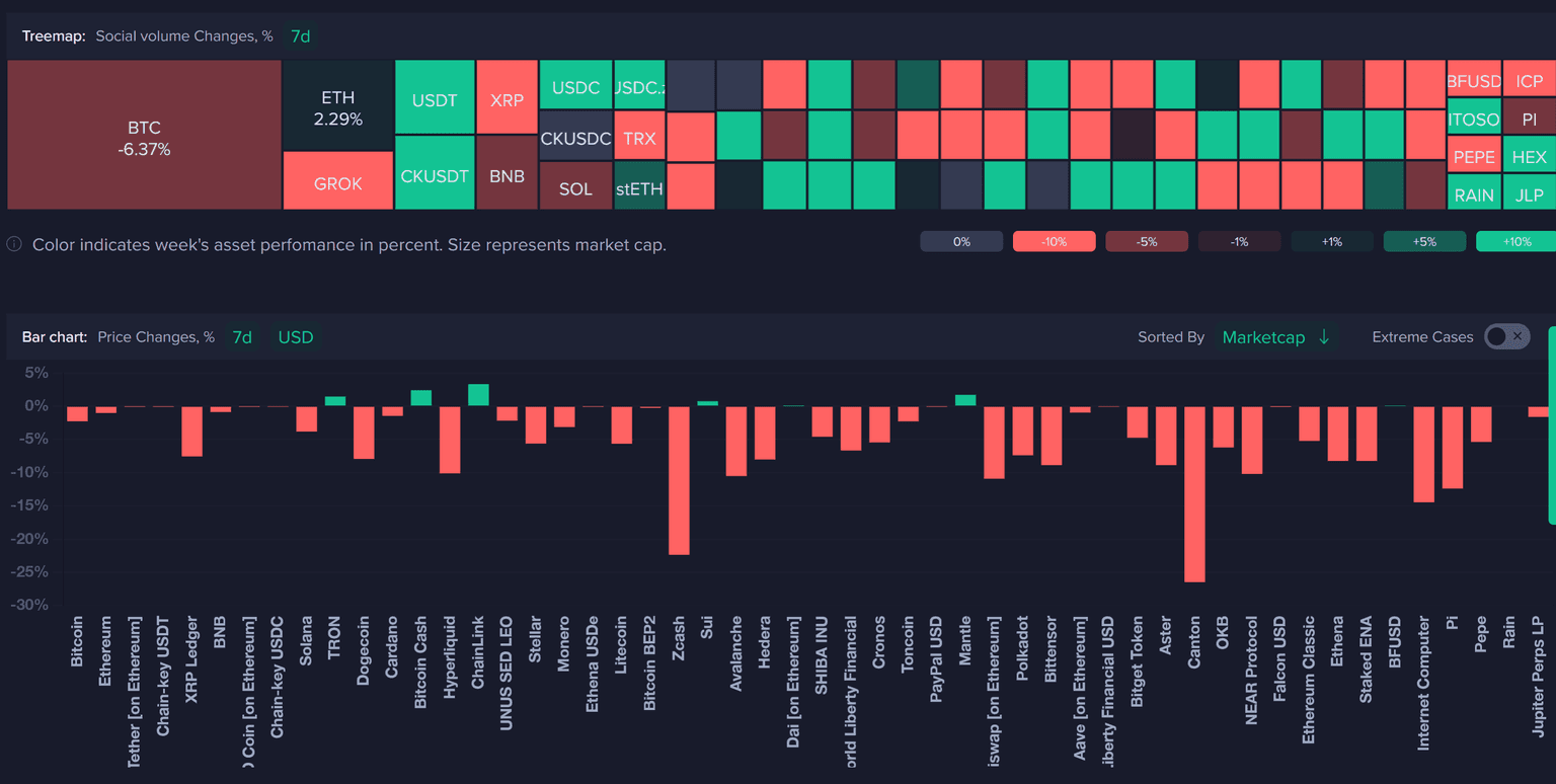 In a week that had several side stories and Bitcoin jumping back up to a high of 89K. The vast majority of coins are in the red, with coins like Zcash (-22%) and Canton (-26%) being the biggest notable losers.