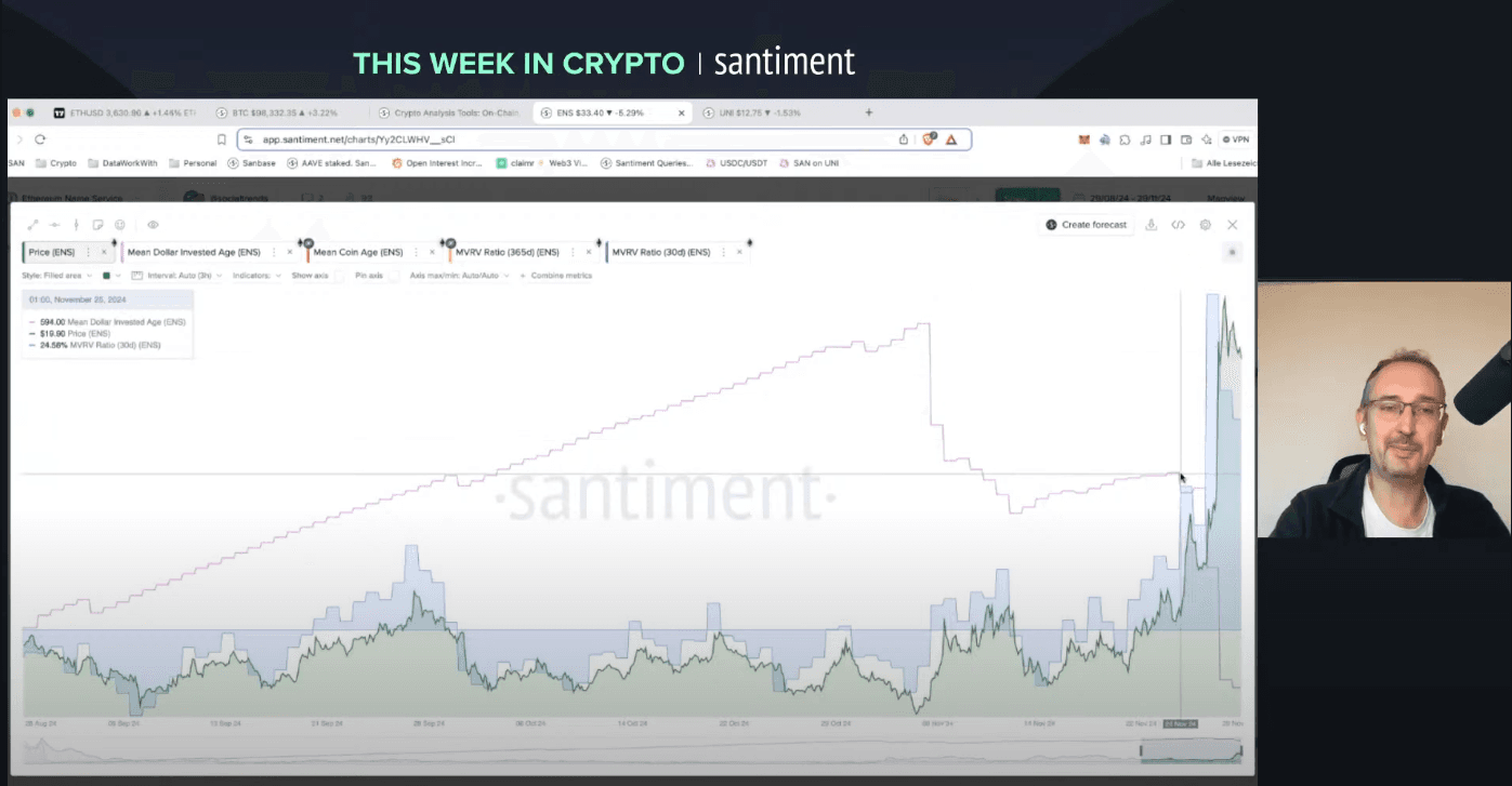 This Thanksgiving update provided clear signals that while we're in a bull market, we're not yet seeing the typical signs of a market top. The analysis suggests continued upside potential, particularly in select altcoins like ENS, while emphasizing the importance of monitoring key metrics for any signs of market exhaustion.