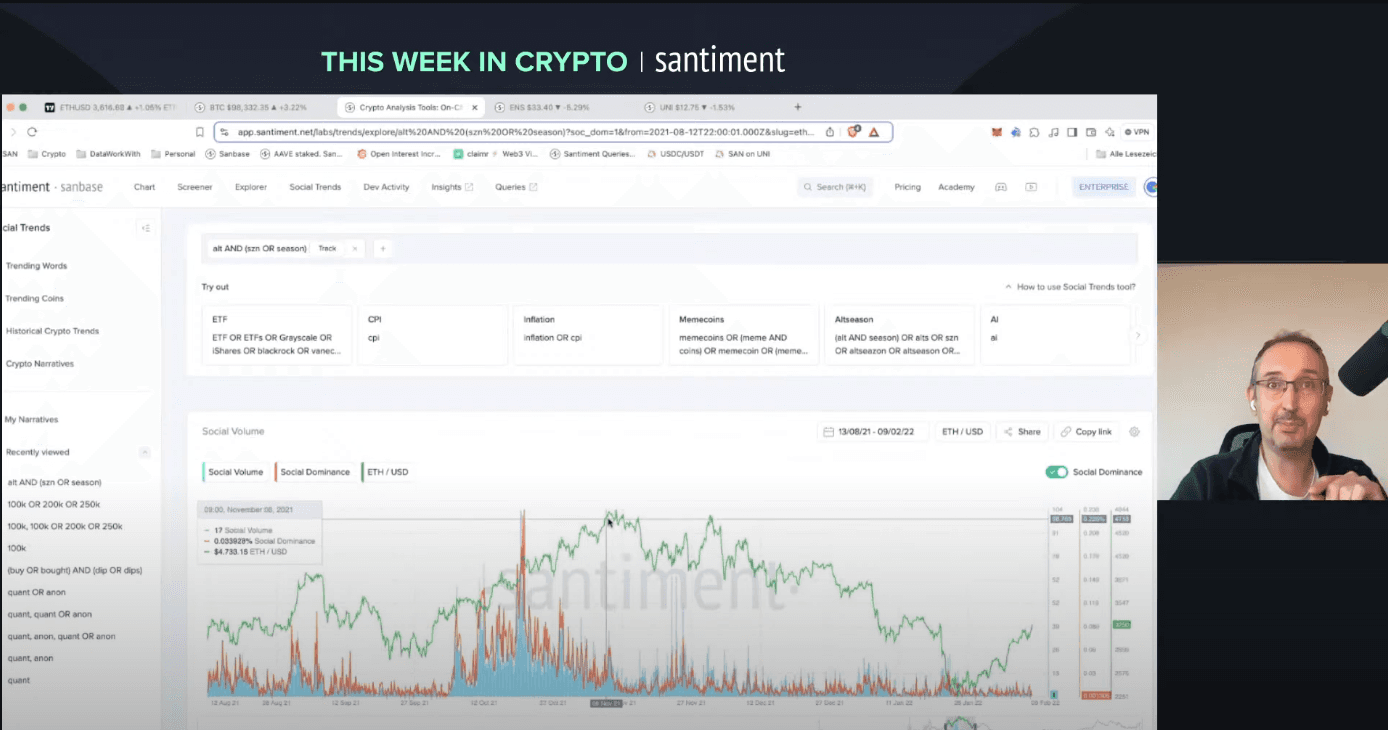 Watch video on Youtube In this special Thanksgiving edition livestream, Maksim Balashevich, the founder of Santiment, shared a focused 15-minute market analysis