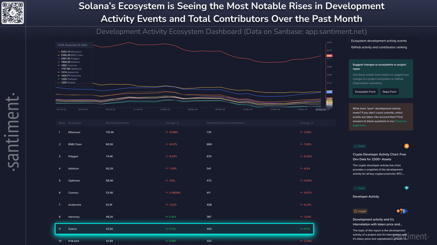With many new projects coming out on the Solana ecosystem in recent months, this has led to a +11.2% increase in overall ecosystem development activity and a +4.2% increase in overall contributors, over the past month. π