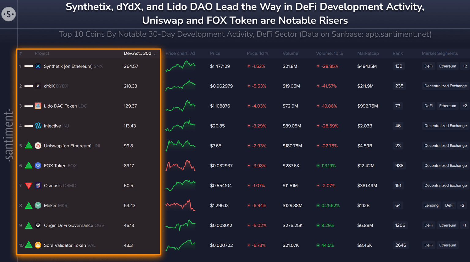 ๐งโ๐ป Here are crypto's top 10 DeFi projects by development. Directional indicators represent each project's ranking positioning since last month: โก๏ธ 1) Synthet