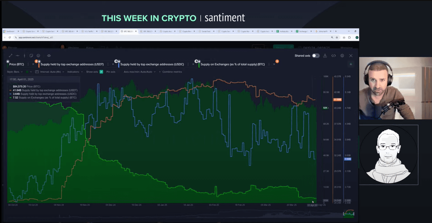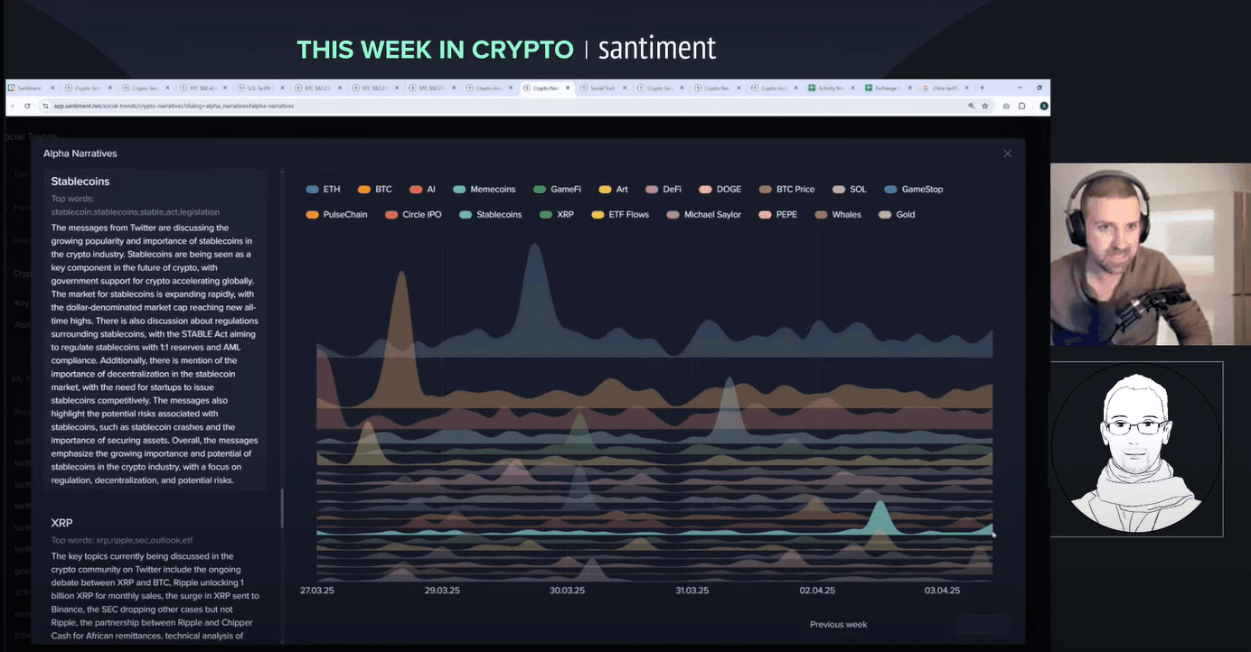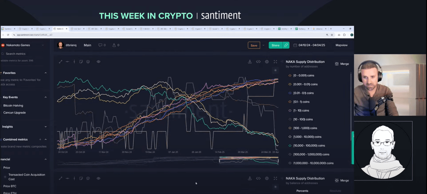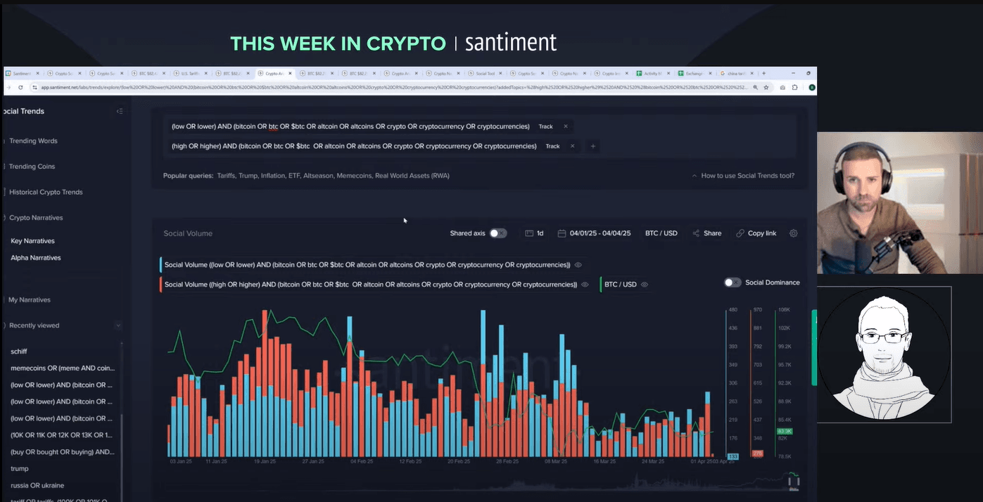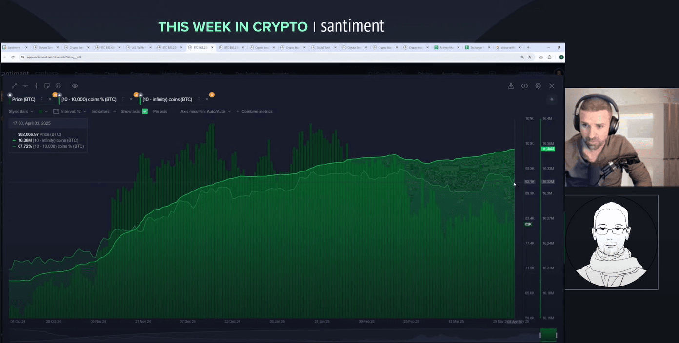 Welcome to a wild week in crypto! On 4 April 2025, Brian and Maksim tackle a livestream packed with insights on tariffs, market crashes and the surprising strength of crypto. Brian, Director of Marketing, brings years of market analysis to the table. Maksim, CEO of Santiment, adds a global perspective on sentiment and trends. Why listen to them? They combine hard data with real-time reactions to unpack chaos like the S&P 500's 10% plunge and China's 34% tariff retaliation. Want to know how bitcoin holds up while stocks bleed? Or why the whales are moving? Let's break it down.