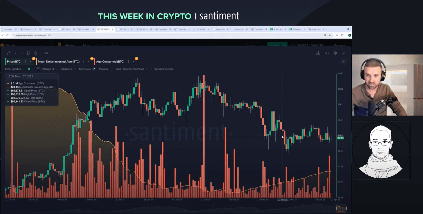 A huge âage consumedâ spike hits as tariffs drop. Brian ties it to profit-taking. Prices reverse slightly after. Old coins moving means momentum, he explains. Itâs a classic signal. Watch on-chain shifts. They hint at turns.