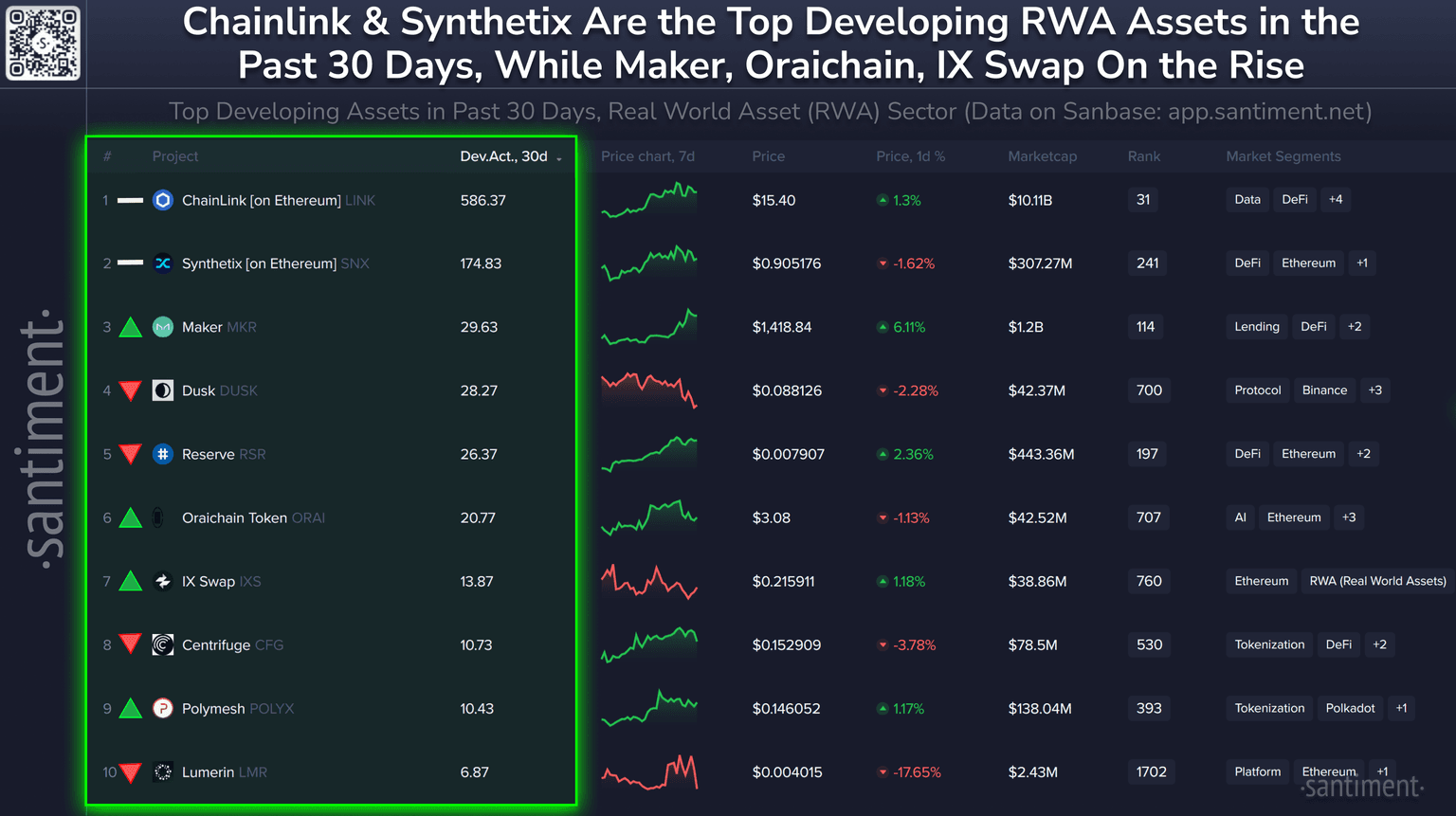 π§βπ» Here are crypto's top Real World Assets (RWA's) by development. Directional indicators represent each project's ranking rise or fall since last month: β‘οΈ