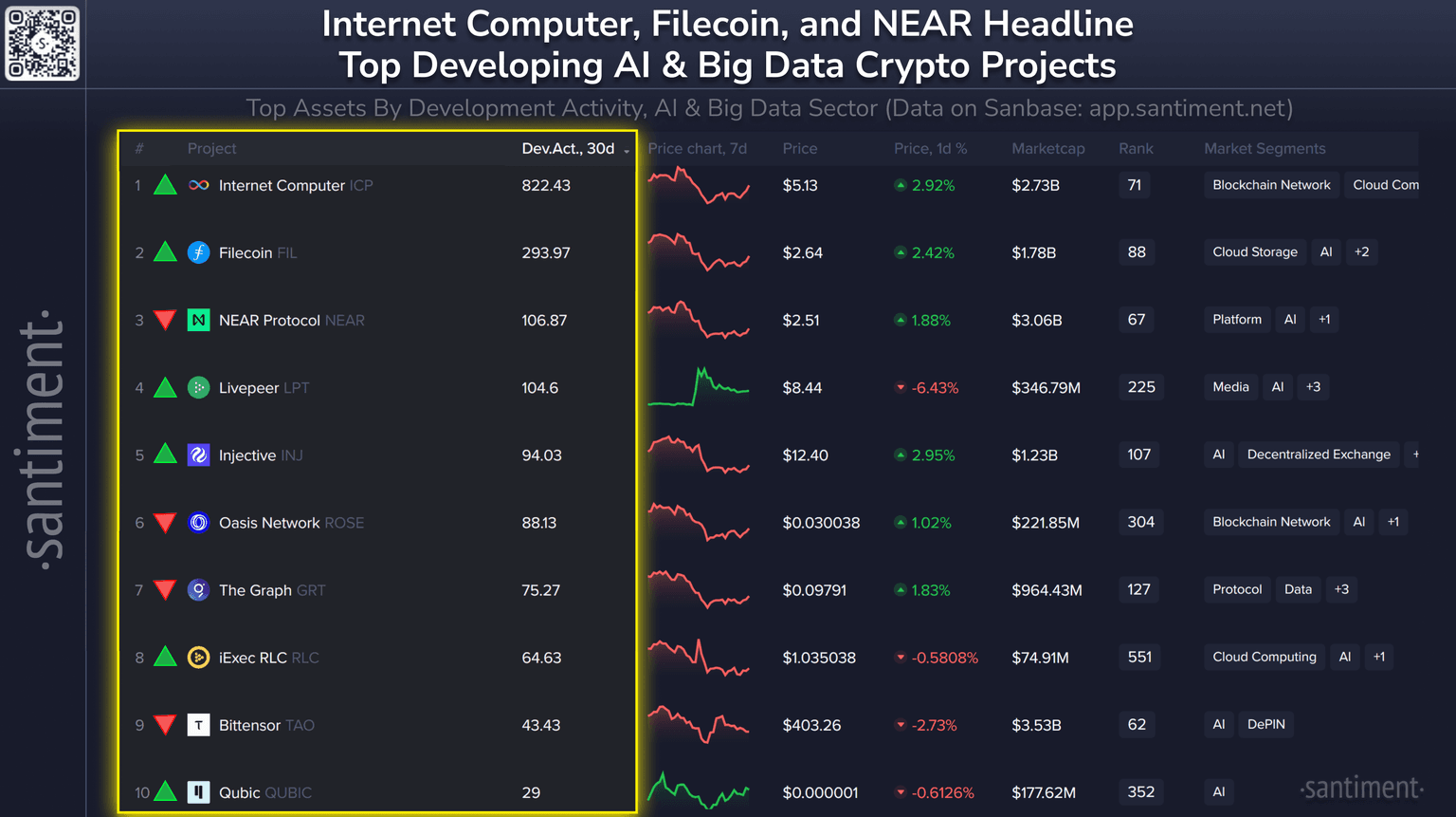 π§βπ» Here are crypto's top 10 AI & Big Data projects by development. Directional indicators represent each project's ranking positioning since last update: π
