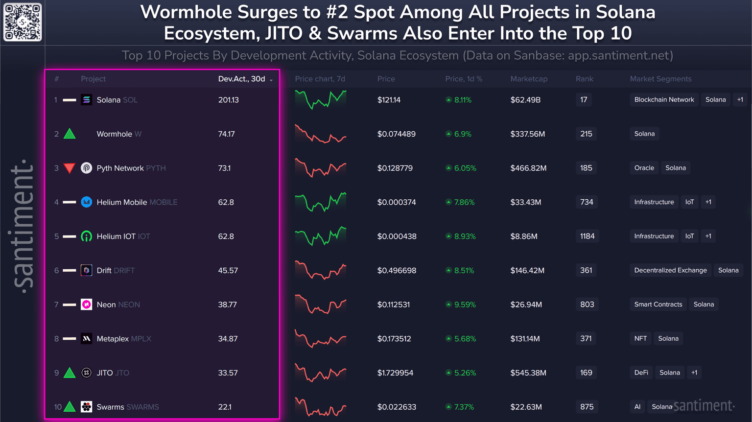 π§π» Here are crypto's top Solana ecosystem projects by development. Directional indicators represent each project's ranking rise or fall since last month: