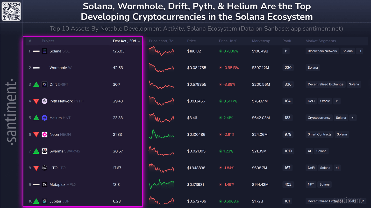 π§βπ» Here are crypto's top Solana ecosystem projects by development. Directional indicators represent each project's ranking rise or fall since last month: β‘οΈ