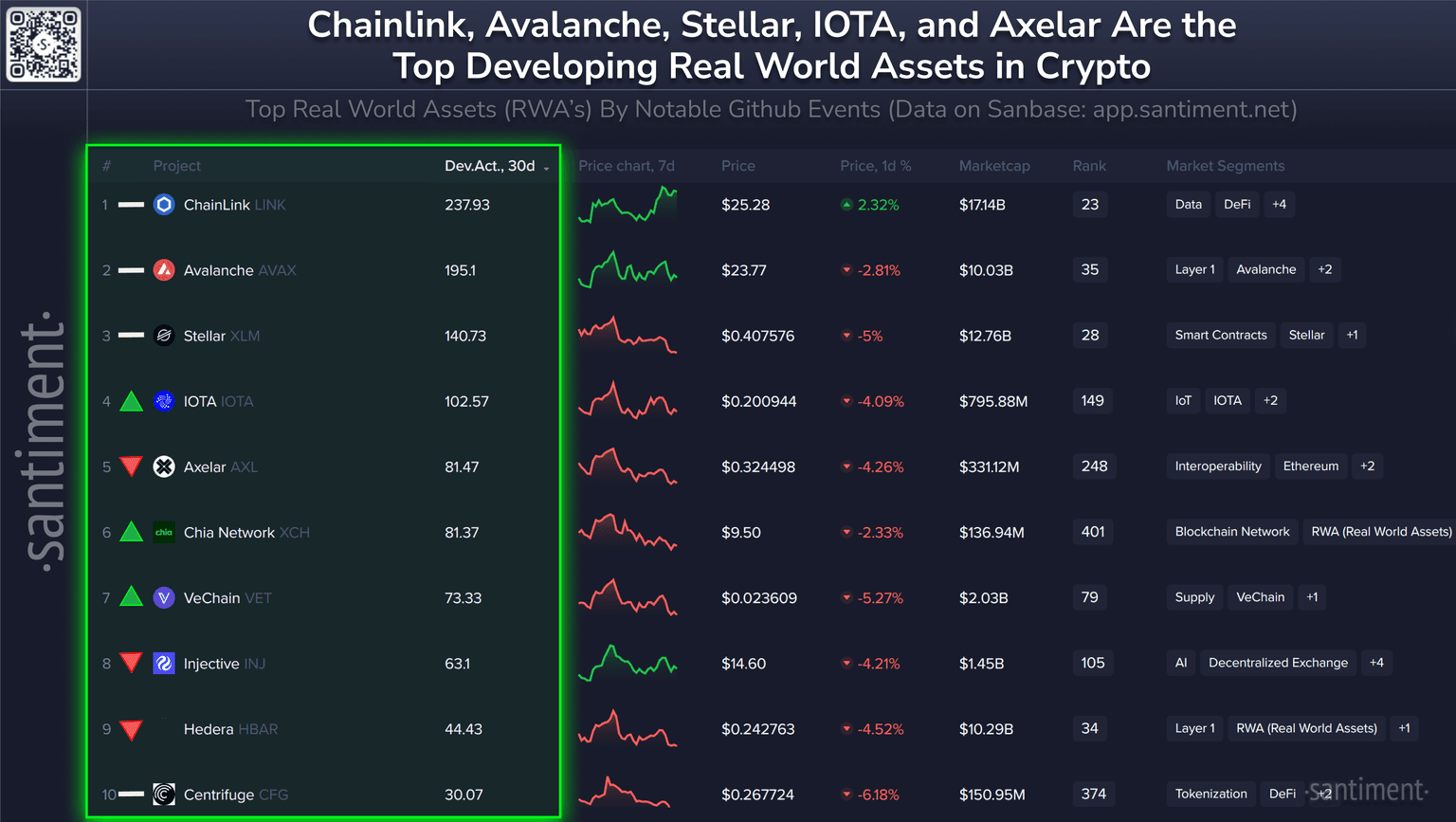 π§βπ» Here are crypto's top Real World Assets (RWA's) by development. Directional indicators represent each project's ranking rise or fall since last month: β‘οΈ