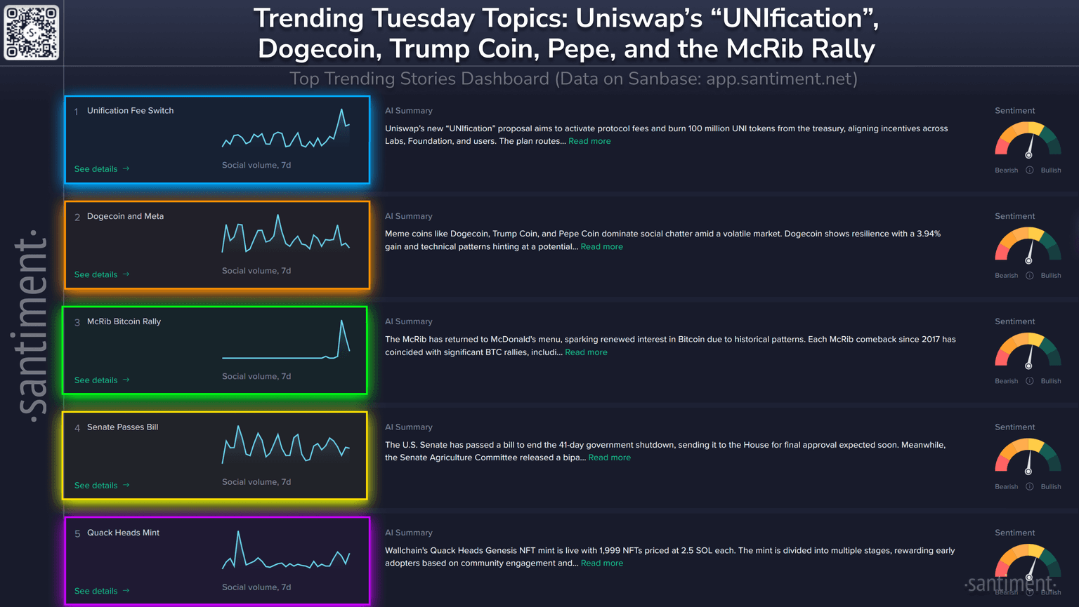 π£οΈ These are the top trending crypto social media topics circulating across X, Reddit, Telegram, 4Chan, Bitcoin, & Farcaster today: π€ Unification Fee Switch: