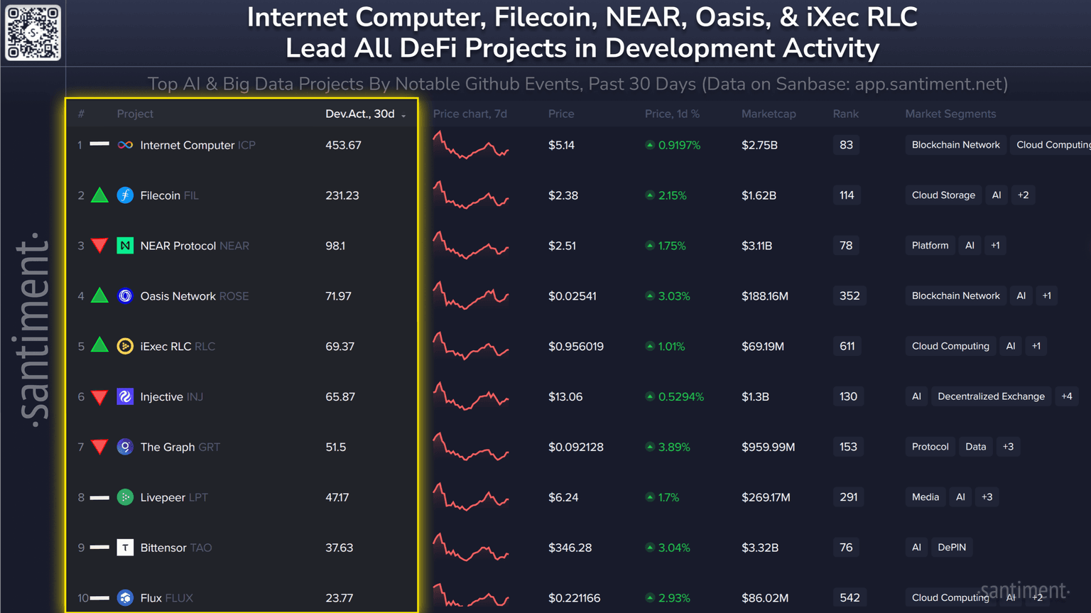 π§βπ» Here are crypto's top 10 AI & Big Data projects by development. Directional indicators represent each project's ranking positioning since last update: β‘οΈ