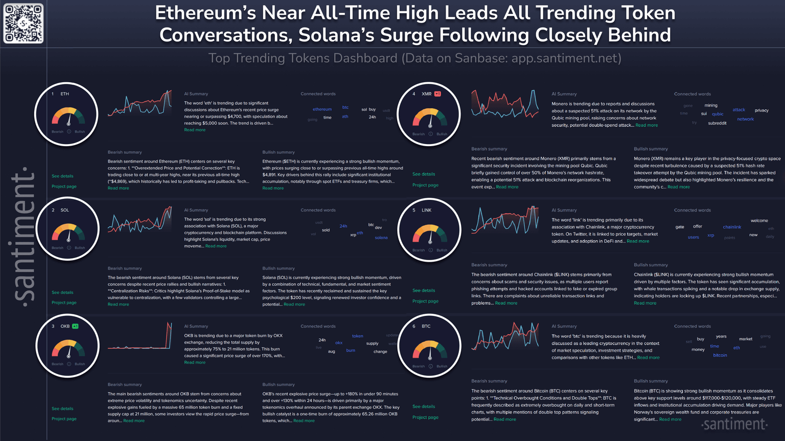 π£οΈ The top trending tokens in crypto, based on social media discussion frequency, are: πͺ The word 'eth' is trending due to significant discussions about Ether