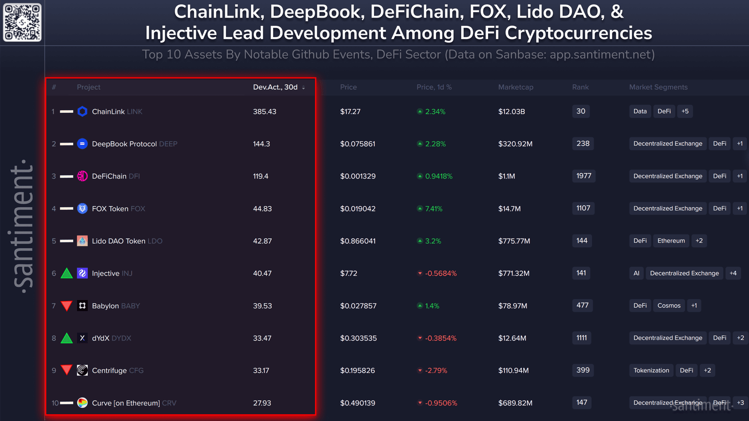 π Read about Santiment's methodology for covering development activity for over 4,000 projects.