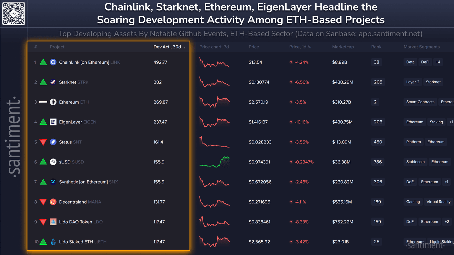 π§βπ» Here are crypto's top ETH-based coins by development activity. Directional indicators represent each project's ranking positioning since last month: π1)