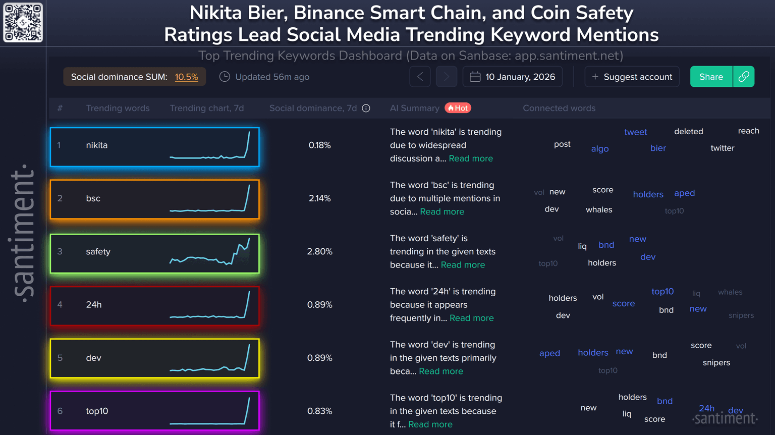 π£οΈ According to social media data on X, Reddit, Telegram, and other platforms, the keywords seeing the highest rises in discussion this weekend are: π΅οΈ Nikita: The word 'nikita' is trending due to widespread discussion and controversy surrounding Nikita Bier, who appears to be a prominent figure related to the Twitter algorithm and Crypto Twitter (CT) community. Users are debating his impact on the platform's reach and content visibility, with some accusing him of damaging the crypto social space by deleting tweets and allegedly manipulating the algorithm. The discourse includes both criticism and support, with references to deleted tweets, algorithm changes, and calls for transparency.