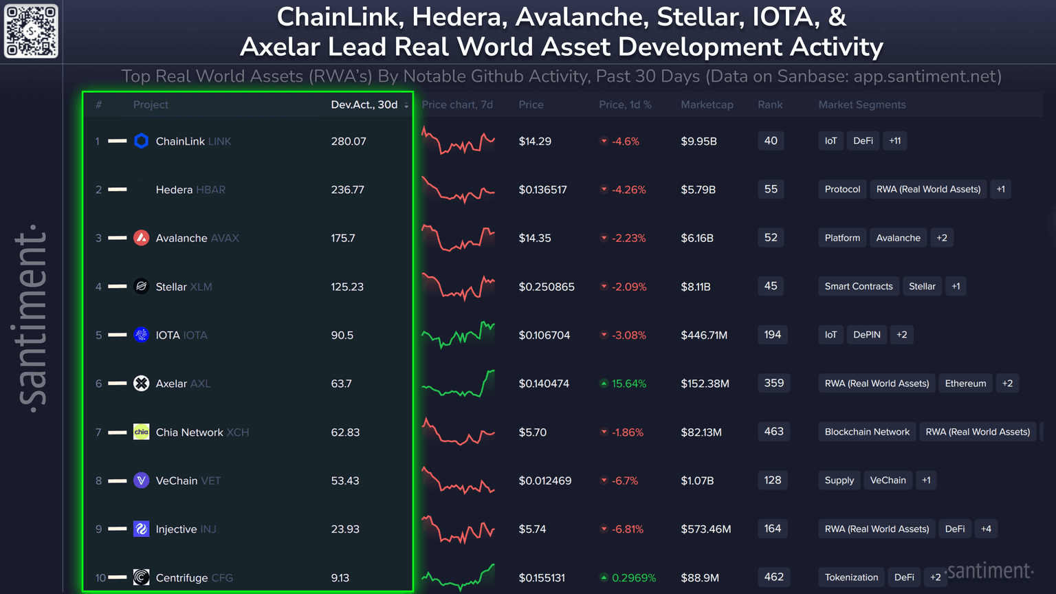 π Read about the Santiment methodology for pulling github activity data from project repositories, and why it is so useful for crypto trading: https://medium.com/santiment/a-different-look-into-blockchain-ecosystem-development-activity-f34f32180482