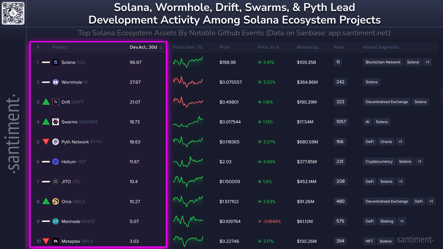 π§βπ» Here are crypto's top Solana ecosystem projects by development. Directional indicators represent each project's ranking rise or fall since last month: β‘οΈ