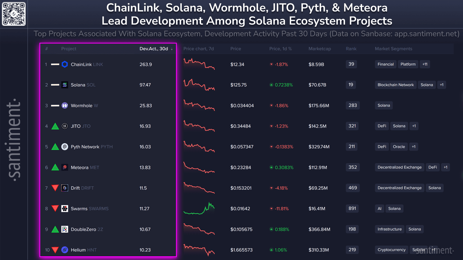 π§π» Here are crypto's top Solana ecosystem projects by development. Directional indicators represent each project's ranking rise or fall since last month: