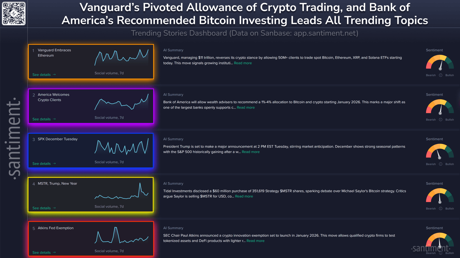 βοΈ Start every day by checking out which stories are driving crypto markets with the Santiment Trending Stories Dashboard here!