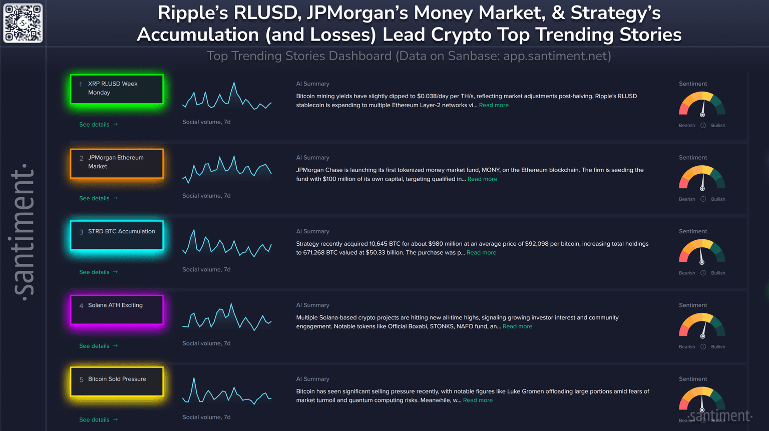 π£οΈ According to data, the top stories getting the most traction and discussion in crypto, are: βοΈ XRP RLUSD Week Monday: Bitcoin mining yields have slightly di