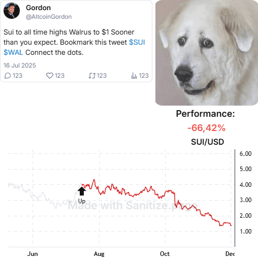 - Key Data: Since an influencer's bullish call, the asset SUI has lost two-thirds of its market cap.