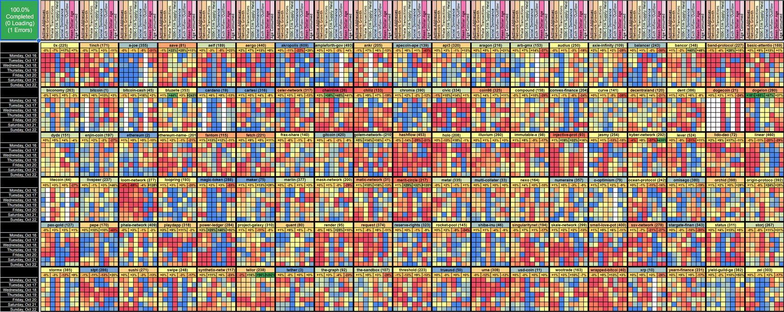 The Santiment Activity Matrix is a tool designed to find assets that are suddenly seeing a huge spike in on-chain and social activity. These spikes often precede major price pivots.