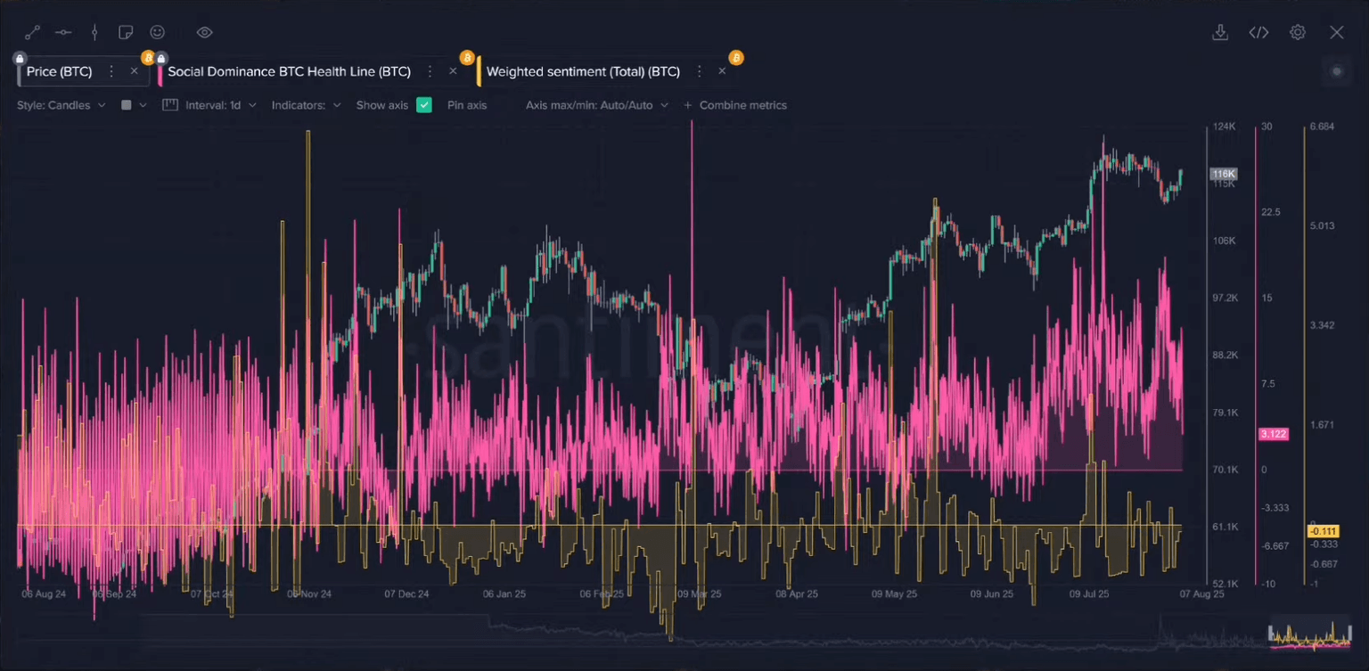 For example, a massive spike in Bitcoin-related chatter in mid-July coincided perfectly with the local price top. Conversely, earlier spikes in discussion during price bottoms marked excellent buying opportunities. The key is to watch for moments of extreme crowd attention, as they often indicate that a move is exhausted.