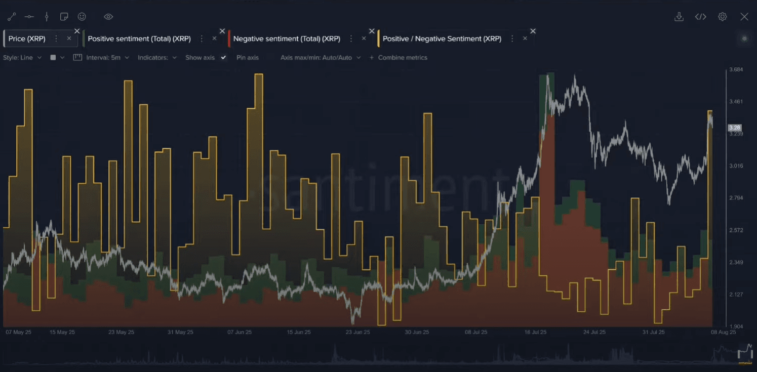 - Key Data: XRP's positive-to-negative sentiment ratio hit its highest level since the June 10th price top.