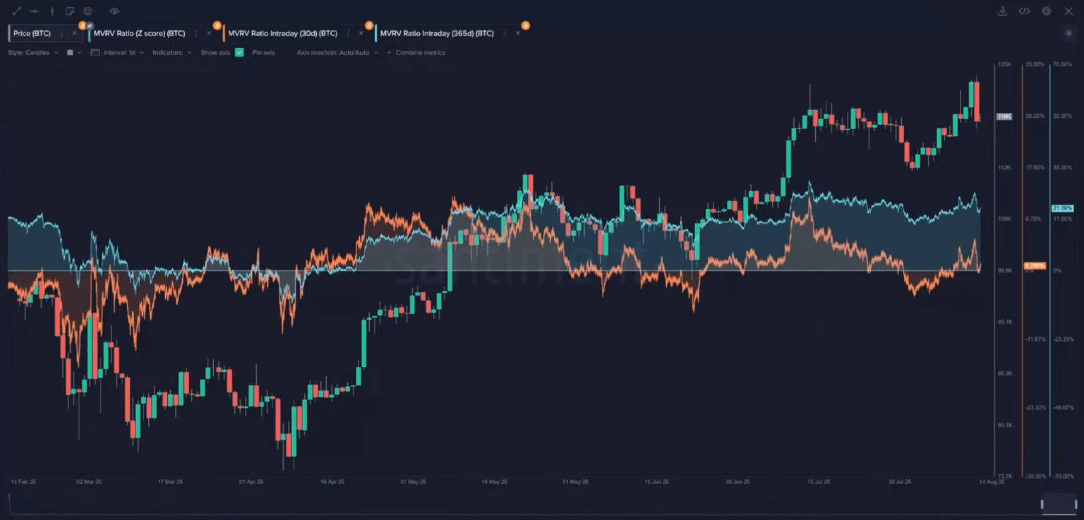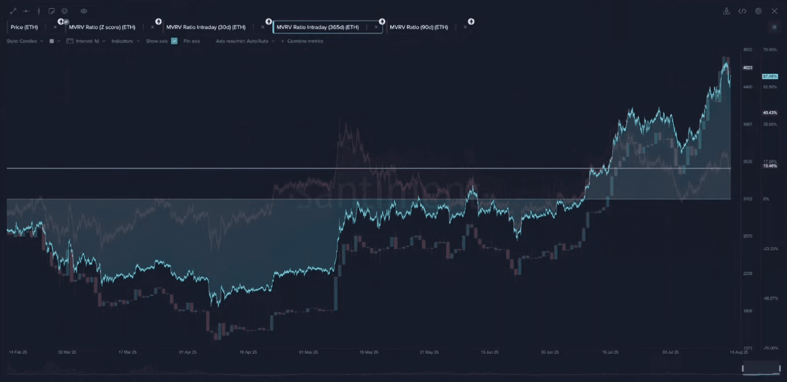 - Key Data: Ethereum's 30-day MVRV is above +15.5%, a historical danger zone, while its 365-day MVRV is at a massive +57%.