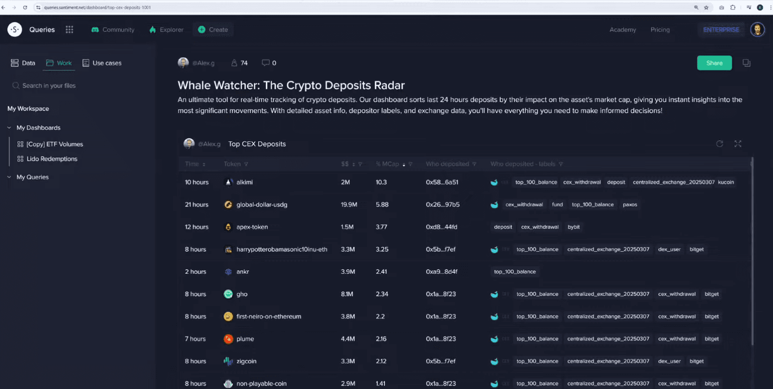 A look at the crypto deposit radar by user Alex G revealed significant whale movements for several altcoins. This tool tracks large transactions moving to centralized exchanges, which is often a precursor to selling. One standout was Alchemy Pay (ACH), which saw a single transaction worth over 10% of its entire market cap move to an exchange.