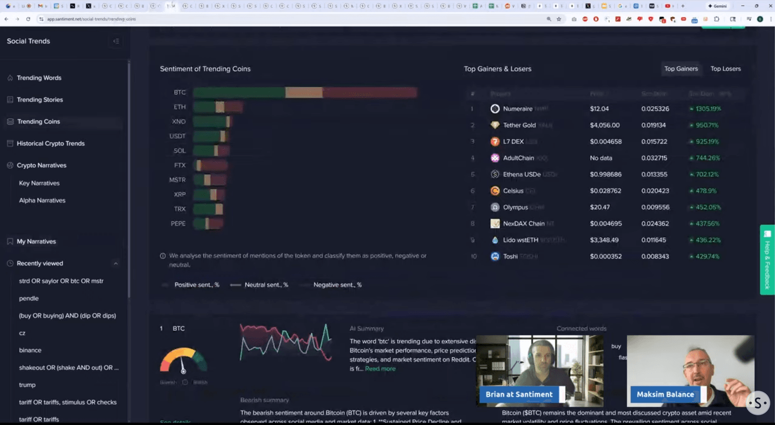 Social sentiment data paints a grim picture. Brian showed a chart revealing that the ratio of bullish to bearish comments has plummeted to 0.69, the lowest level seen all year. This extreme level of fear and negativity across social platforms is a strong contrarian indicator, often appearing just before a market bounce.