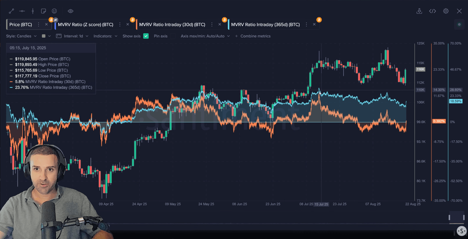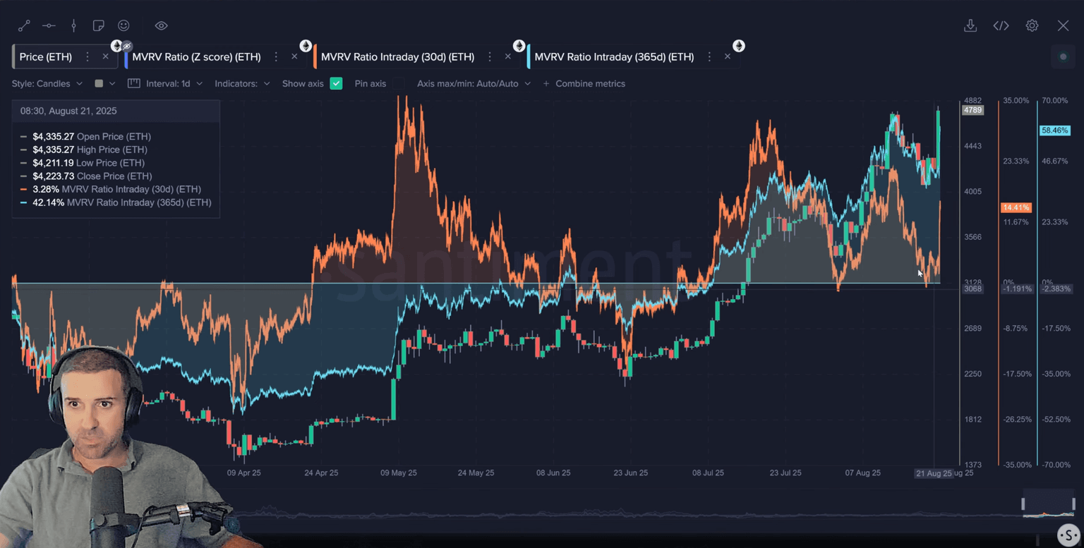 - Key Data: Ethereum's short-term MVRV is near +15%, while its long-term MVRV is at a very high +58.5%.